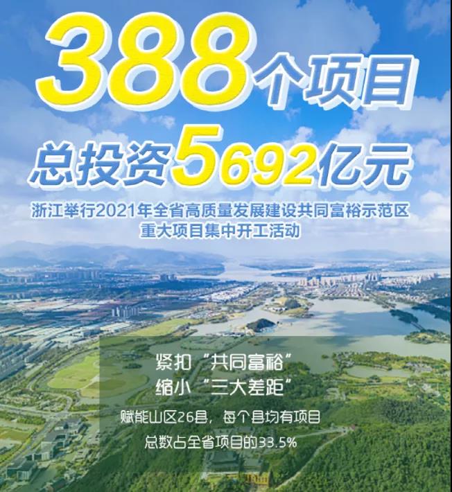 8月13日,浙江省集中開工388個重大項目,總投資5692億元,項目平均投資15億元,年度計劃投資533億元。此次重大項目集中開工活動緊扣“共同富裕”主題,圍繞“縮小地區(qū)差距、城鄉(xiāng)差距和收入差距”展開。