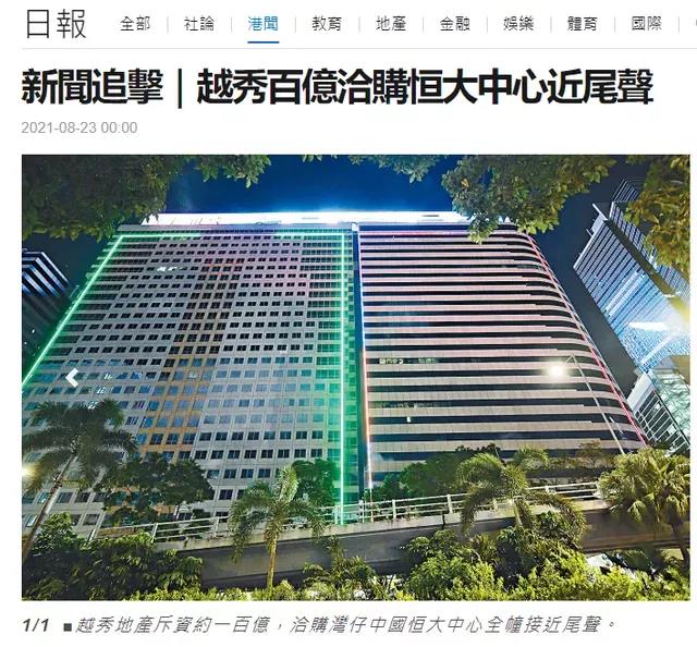 8月23日,據(jù)《星島日報》引述知情人士報道,中國恒大計劃以105億元將其香港總部大樓出售予越秀地產(chǎn)。據(jù)報,恒大此前曾提出156億元的意向價,兩家公司擬短期內(nèi)確認(rèn)交易。