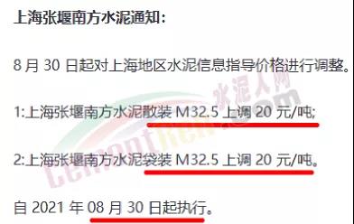 8月30日上海地區(qū)主流品牌P.C42.5、M32.5水泥價(jià)格上漲20元/噸,通知稱因原料供應(yīng)緊張,成本持續(xù)增加,加之下游需求好轉(zhuǎn),因此水泥價(jià)格再次推漲。