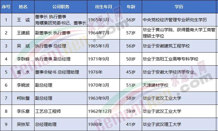 上市公司數(shù)據(jù)庫(kù)顯示,吳斌先生,1965年1月出生,現(xiàn)年56歲。海螺水泥上市公司執(zhí)行董事、總經(jīng)理,高級(jí)經(jīng)濟(jì)師。