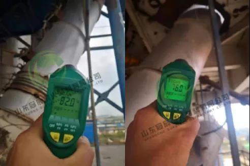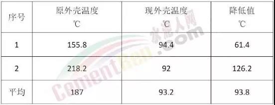 新型納米微晶管安裝到下料管中并投入使用后,在正常生產(chǎn)運(yùn)行中,用專門的紅外線成像測(cè)溫儀器,對(duì)更換的部位進(jìn)行測(cè)溫,溫度改善效果詳細(xì)見下表。