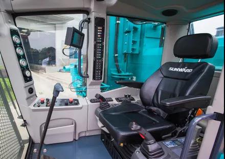 4.人文關(guān)懷,安全保障。司機室裝有冷暖空調(diào)、正壓系統(tǒng)、新風系統(tǒng)等,讓操作手遠離職業(yè)病傷害,此外,鉆機上還安裝了急停按鈕、滅火器等,充分保障使用者的人身安全。