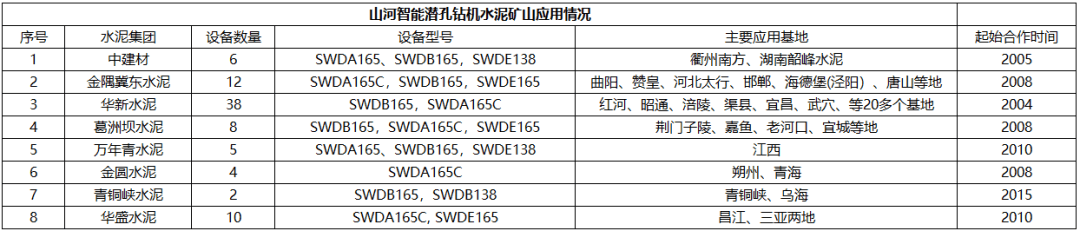 為積極應(yīng)對(duì)市場(chǎng)變化,多家水泥企業(yè)主動(dòng)轉(zhuǎn)變發(fā)展方式,其中,中建材、金隅冀東、華新、葛洲壩等水泥集團(tuán)從鉆孔爆破、礦山開(kāi)采等方面著手,選用國(guó)內(nèi)鑿巖鉆機(jī)“領(lǐng)跑者”——山河智能裝備股份有限公司(以下簡(jiǎn)稱(chēng)“山河智能”)的鑿巖設(shè)備,在環(huán)保、智能、提效等方面均取得了有力的突破。