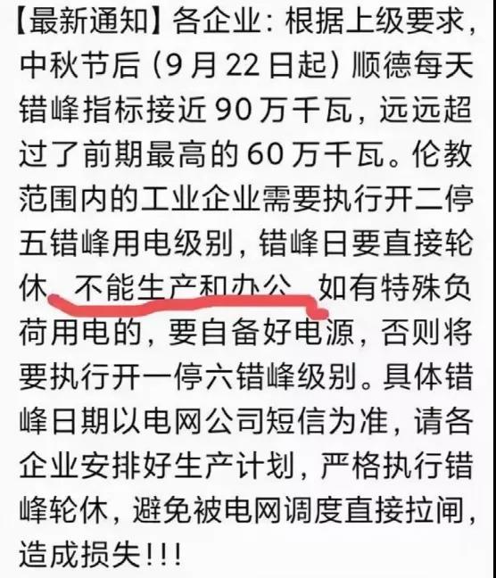 近日,廣東多地企業(yè)都接到了通知,特別是高耗能企業(yè),要求限電停產(chǎn)。部分企業(yè)要求,從即日開始到9月30日,都不得開工,多處的變壓器都給扯掉了,就是為了降能耗。