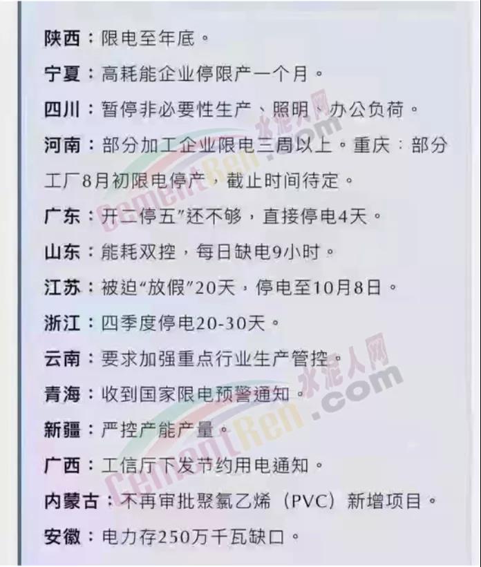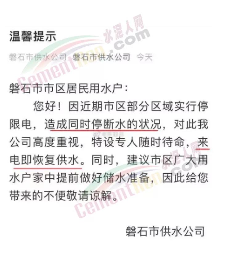 “不定期、不定時、無計劃、無通知停電限電,或?qū)⒊掷m(xù)到2022年3月份”、“停電、停水或變?yōu)槌B(tài)”、“不僅工業(yè)用電被限,民用電也一起被限制了”、“水泥價格還會上漲”... ...