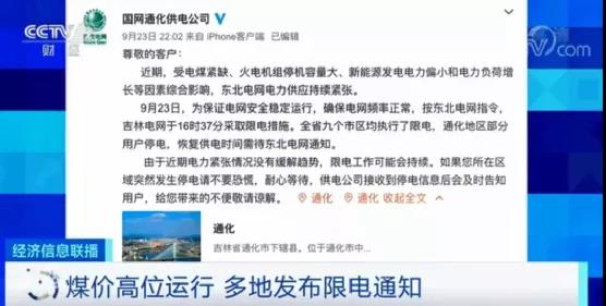 最近國網(wǎng)吉林、通化的供電公司都在通告中提到,由于電力緊張沒有緩解趨勢,限電工作可能會持續(xù)。