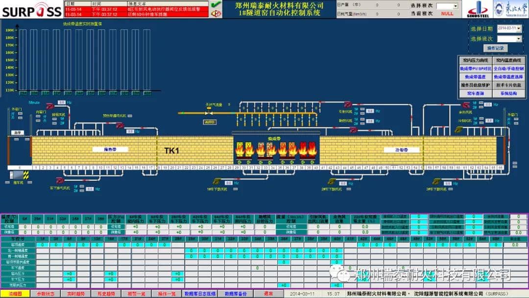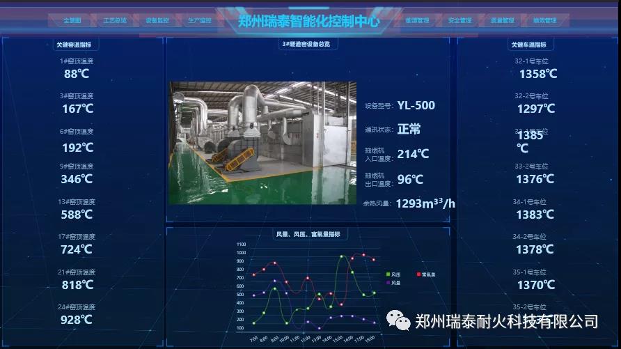 鄭州瑞泰在生產(chǎn)系統(tǒng)中采用MES系統(tǒng),并實現(xiàn)與ERP、DCS、PLC等系統(tǒng)的集成運行。采用條碼管理系統(tǒng),通過在PLM系統(tǒng)中使用,實現(xiàn)對產(chǎn)品全生命周期質(zhì)量實時追溯。通過上線質(zhì)量管理系統(tǒng),產(chǎn)品質(zhì)量信息可在線自動檢測、自動記錄。集控系統(tǒng)提供隧道窯、環(huán)保設(shè)備各項指標實時監(jiān)測管理,具有數(shù)據(jù)采集、顯示、存儲、統(tǒng)計報表、打印、告警等功能。建立管控一體的中央控制室,主要用能設(shè)備實現(xiàn)實時監(jiān)測與控制。創(chuàng)建軟硬件安全運行環(huán)境,確保網(wǎng)絡(luò)安全應(yīng)急響應(yīng)、實時恢復及安全可控。