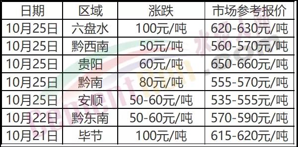 從近期各區(qū)域水泥企業(yè)報價可見,河南、貴州、山東等多區(qū)域水泥價格仍處于上漲通道。10月20日~25日貴州省內(nèi)黔西南、黔東南、黔南、安順、貴陽水泥價格上調(diào)50-80元/噸,畢節(jié)、六盤水水泥價格上調(diào)100元/噸以上。市場報價在500~630元/噸之間。