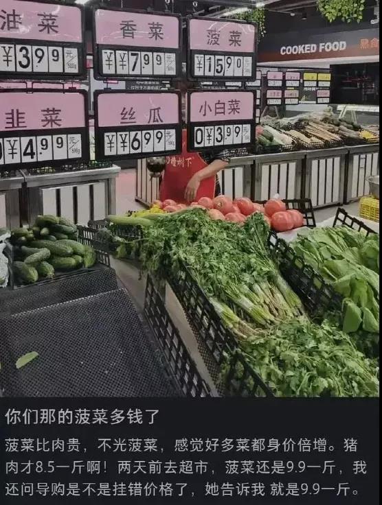 國慶節(jié)后,全國多地菜市場的蔬菜,價格居高不下,有的蔬菜每斤單價突破10元大關(guān)。有網(wǎng)友甚至調(diào)侃:窮的只能吃肉了……