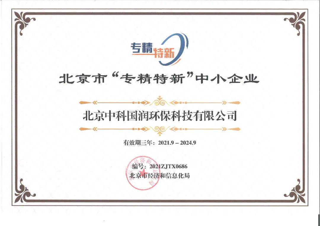 2021年9月14日,北京市經(jīng)濟和信息化局公布了北京市2021年度第五批“專精特新”中小企業(yè)名單,北京中科國潤環(huán)??萍加邢薰境晒θ脒x!