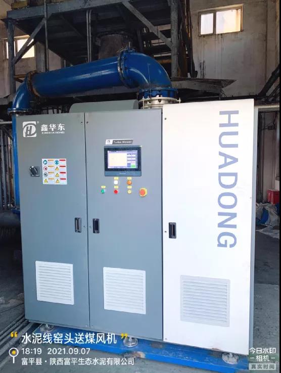 陜西富平生態(tài)水泥有限公司是陜煤化集團陜西生態(tài)水泥股份有限公司所屬全資子公司,此前,其5000T/D水泥生產(chǎn)線上使用的4臺羅茨鼓風(fēng)機(其中2臺功率為250KW,2臺為185KW),存在嚴重的能耗高、噪音大且經(jīng)常需要維修保養(yǎng)的問題。為貫徹環(huán)保、節(jié)能、可持續(xù)發(fā)展的經(jīng)營理念,綜合比較多款風(fēng)機后,富平生態(tài)水泥最終決定決定采用山東華東風(fēng)機有限公司(以下簡稱“華東風(fēng)機”)的磁懸浮高速離心鼓風(fēng)機對原有的羅茨風(fēng)機進行更換。