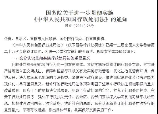 日前,國務(wù)院印發(fā)《關(guān)于進(jìn)一步貫徹實施〈中華人民共和國行政處罰法〉的通知》,指出因行政管理迫切需要依法先以部門規(guī)章設(shè)定罰款的,設(shè)定的罰款數(shù)額最高不得超過10萬元,且不得超過法律、行政法規(guī)對相似違法行為的罰款數(shù)額,涉及公民生命健康安全、金融安全且有危害后果的,設(shè)定的罰款數(shù)額最高不得超過20萬元;超過上述限額的,要報國務(wù)院批準(zhǔn)。