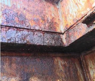 鳳陽某廠、漳平某廠窯尾除塵器采用涂刷環(huán)氧富鋅底漆作為防腐措施,運行約三個月內防腐效果良好。但后期環(huán)氧富鋅漆中鋅元素消耗完畢,除塵器產生嚴重腐蝕現(xiàn)象。