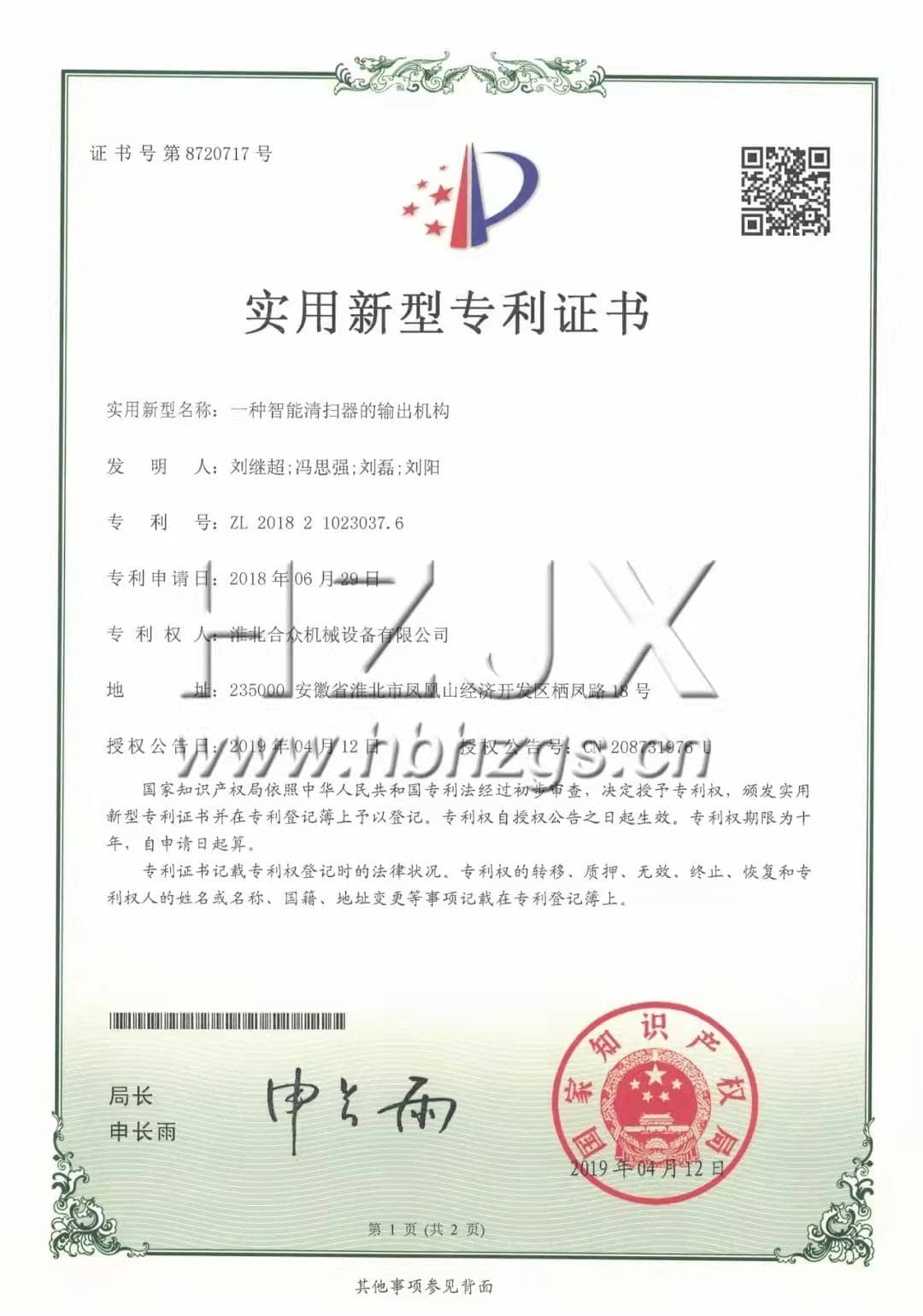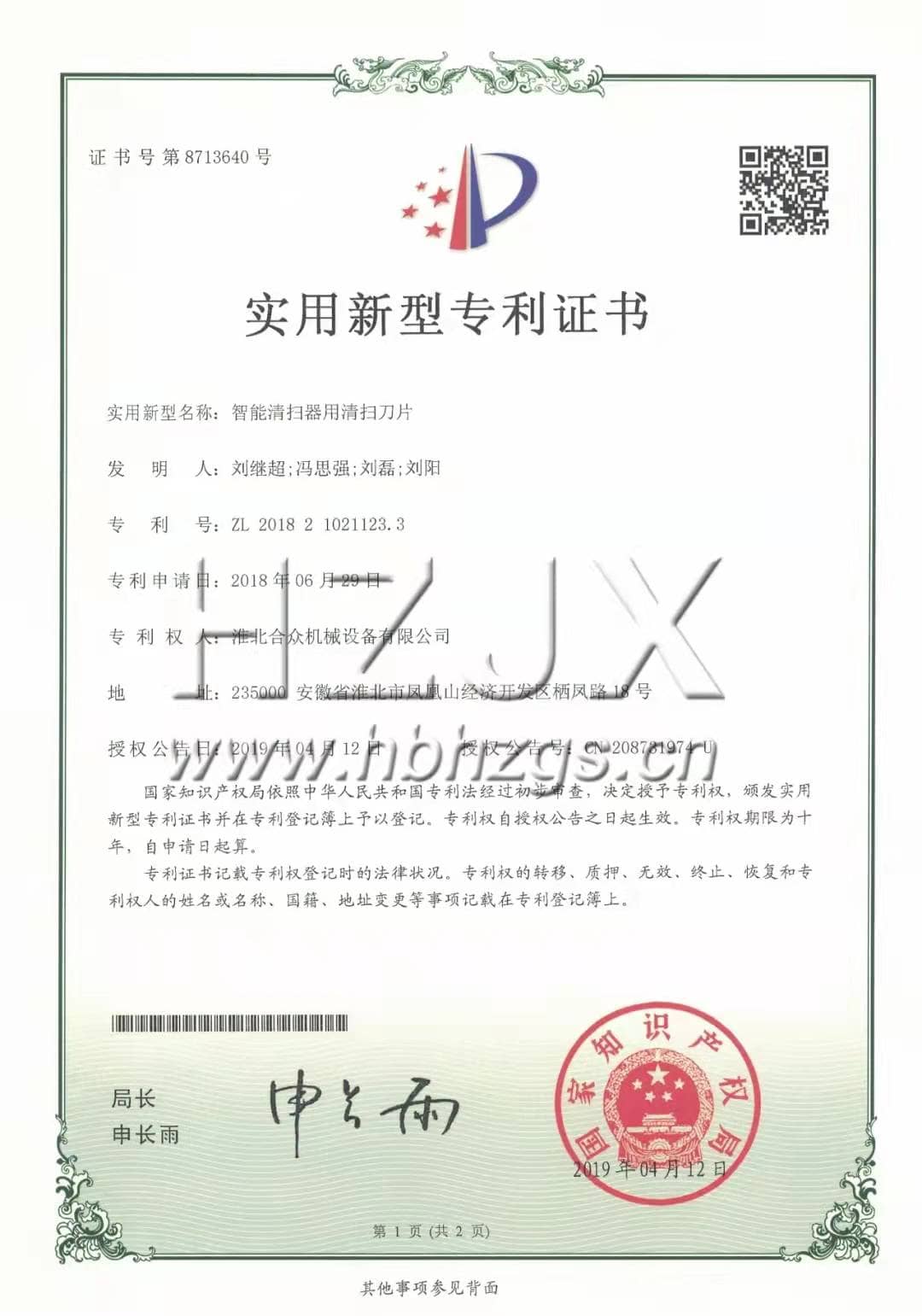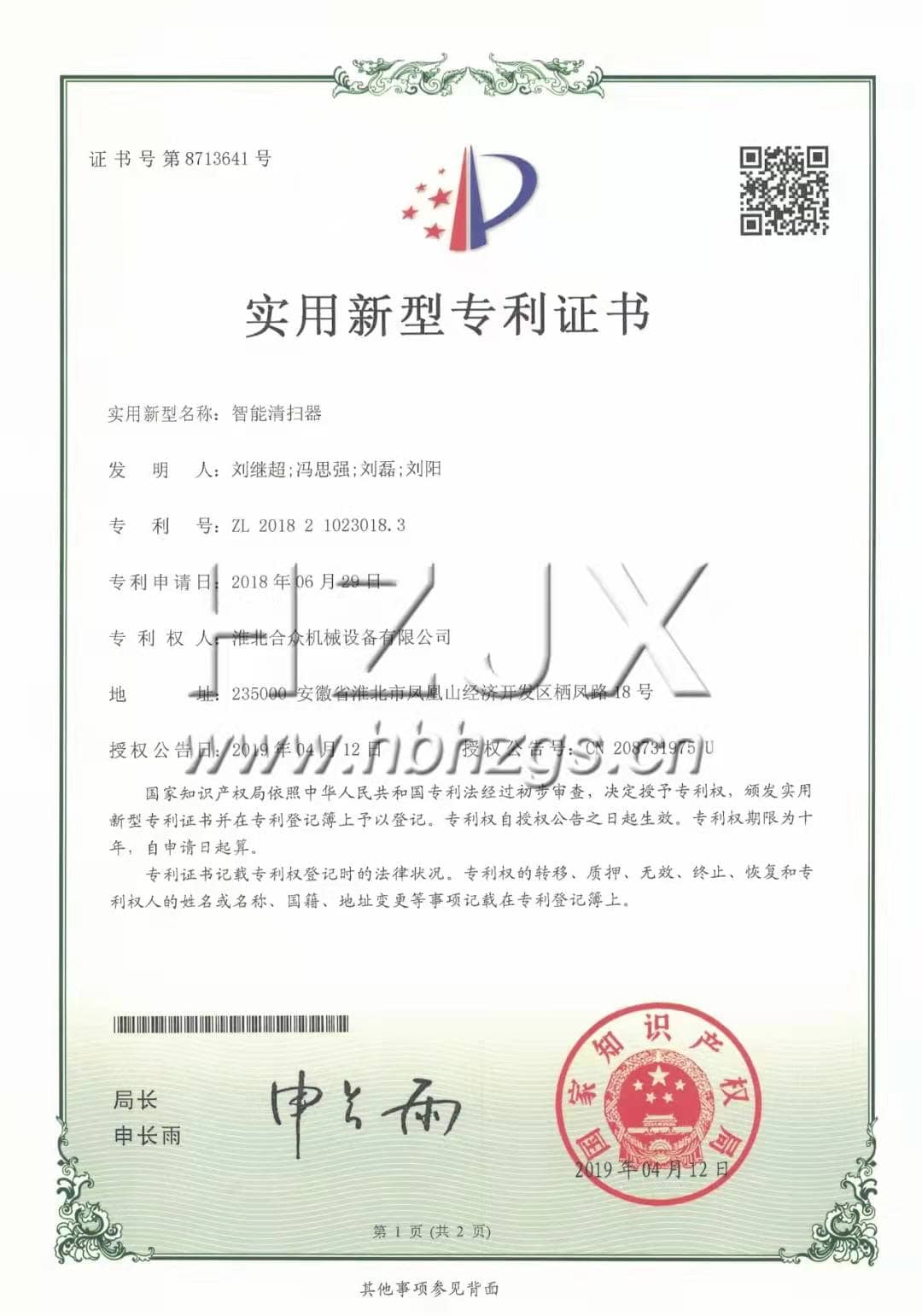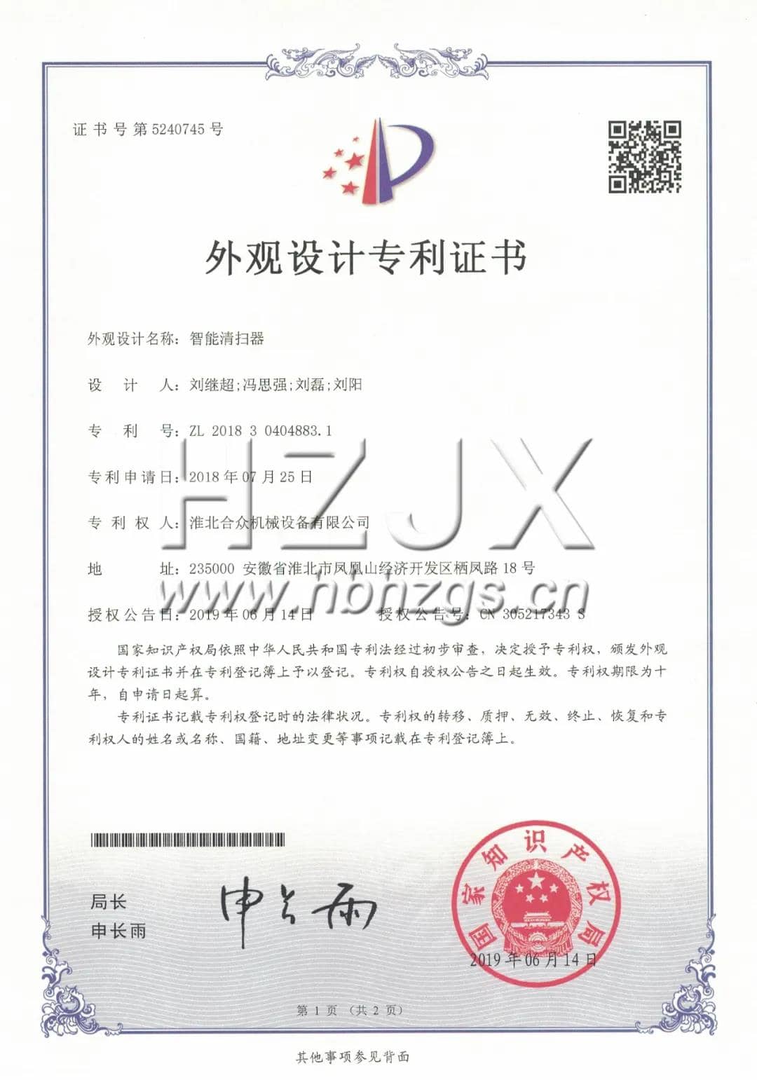 1.智能清掃裝置為淮北合眾自主研發(fā)產(chǎn)品,為全球首創(chuàng),屬于行業(yè)首例產(chǎn)品,并擁有8項專利;