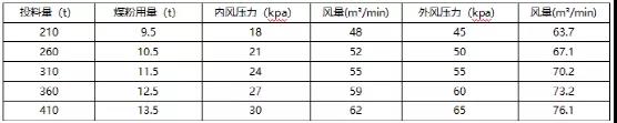 滿產(chǎn)時(shí),齒槽內(nèi)風(fēng)推薦使用壓力30kpa,最大使用壓力35kpa,外風(fēng)推薦使用壓力55kpa,最大使用壓力65kpa;投料期間,二次風(fēng)溫低于1000℃,中心風(fēng)全關(guān),高于1000℃,現(xiàn)場(chǎng)表壓壓力控制在5000pa以?xún)?nèi);冷卻風(fēng)在滿產(chǎn)后開(kāi)啟,2000-3000pa壓力即可。