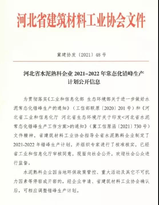 截止2021底共有26個區(qū)域發(fā)布了常態(tài)化錯峰生產(chǎn)計劃,其中基準(zhǔn)停產(chǎn)天數(shù)最長達(dá)180天。河北金隅鼎鑫水泥有限公司2000t/d生產(chǎn)線2022年非采暖季錯峰30天,采暖季錯峰260天,合計停產(chǎn)天數(shù)達(dá)290天,為各區(qū)域停產(chǎn)天數(shù)最長的水泥企業(yè)。
