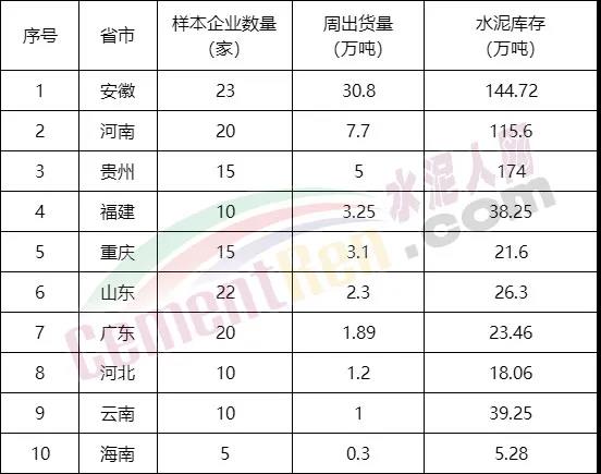 從各區(qū)域水泥出貨量來看,福建、河北、河南、云南、貴州、重慶、山東、海南、廣東、安徽等區(qū)域出貨量較10日前稍有增加,市場略有回升。