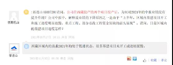 祁連山水泥在上市平臺(tái)回復(fù)投資者關(guān)于西藏投產(chǎn)的兩個(gè)項(xiàng)目相關(guān)問(wèn)題時(shí)亦有表示,西藏區(qū)域內(nèi)的需求2021年均處于低迷狀態(tài),很多基建項(xiàng)目未開(kāi)工或進(jìn)展緩慢。