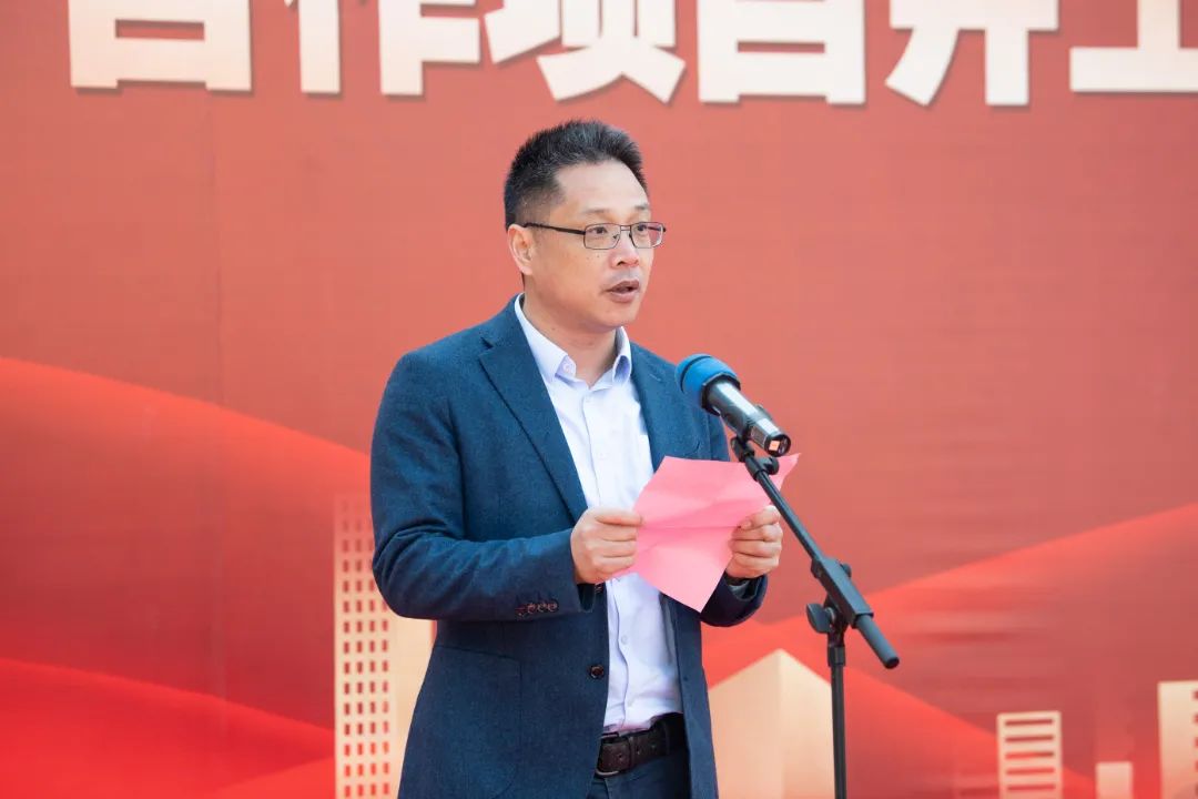 各位領(lǐng)導(dǎo)上臺共同啟動本次合作項目,上黃鎮(zhèn)黨委書記強(qiáng)建方宣布本次合作項目正式開工。