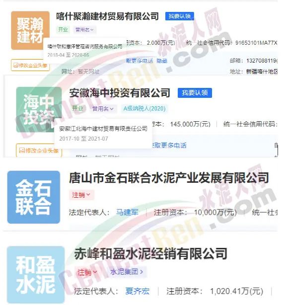 據(jù)愛企查數(shù)據(jù)顯示,截止目前上述聯(lián)合水泥公司多數(shù)已經(jīng)進(jìn)行了變更。涉及企業(yè)名稱、經(jīng)營范圍變更、人員變更、出資比例變更、市場主體類型變更以及股權(quán)變更等多個(gè)項(xiàng)目。其中,喀什聯(lián)和惠澤管理咨詢服務(wù)有限公司、安徽江北海中建材貿(mào)易有限責(zé)任公司兩家企業(yè)已更名;唐山金石聯(lián)合水泥產(chǎn)業(yè)發(fā)展有限公司、赤峰和盈水泥經(jīng)銷有限公司已為“注銷”狀態(tài)。