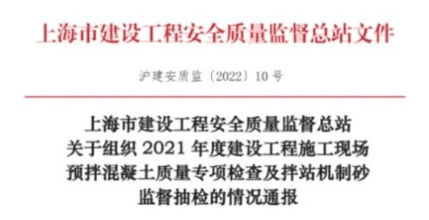 日前,上海市建設(shè)工程安全質(zhì)量監(jiān)督總站發(fā)布《關(guān)于組織2021年度建設(shè)工程施工現(xiàn)場預(yù)拌混凝土質(zhì)量專項檢查及拌站機(jī)制砂監(jiān)督抽檢的情況通報》稱,為防范工程質(zhì)量事故發(fā)生,加強(qiáng)混凝土質(zhì)量管控,規(guī)范見證取樣行為,針對目前機(jī)制砂來源不穩(wěn)定、質(zhì)量控制難度大的情況,上海市建設(shè)工程安全質(zhì)量監(jiān)督總站于2021年3月-12月,在全市范圍內(nèi)開展建設(shè)工程施工現(xiàn)場預(yù)拌混凝土質(zhì)量專項檢查及混凝土攪拌站機(jī)制砂(人工砂)監(jiān)督抽檢。
