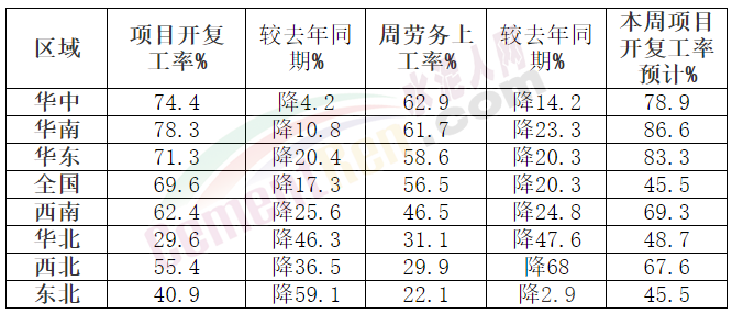 2月17日~2月24日全國12099工程項(xiàng)目開復(fù)工、勞務(wù)上工情況一覽