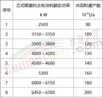 水泥粉磨產(chǎn)能核定表(立式輥磨機(jī)系統(tǒng))