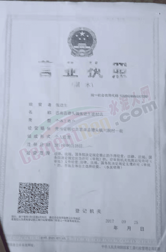 圖:張進(jìn)生建材店?duì)I業(yè)執(zhí)照