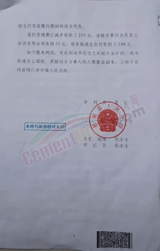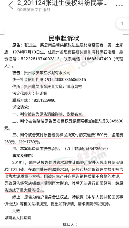 日前,水泥人網(wǎng)接到貴州省銅仁市思南縣塘頭鎮(zhèn)川硐村黑石屯組建材經(jīng)銷個(gè)體戶張進(jìn)生反饋稱,因銷售不合格水泥被客戶訴之法院,導(dǎo)致名譽(yù)受損,水泥銷售生意難以維系。
