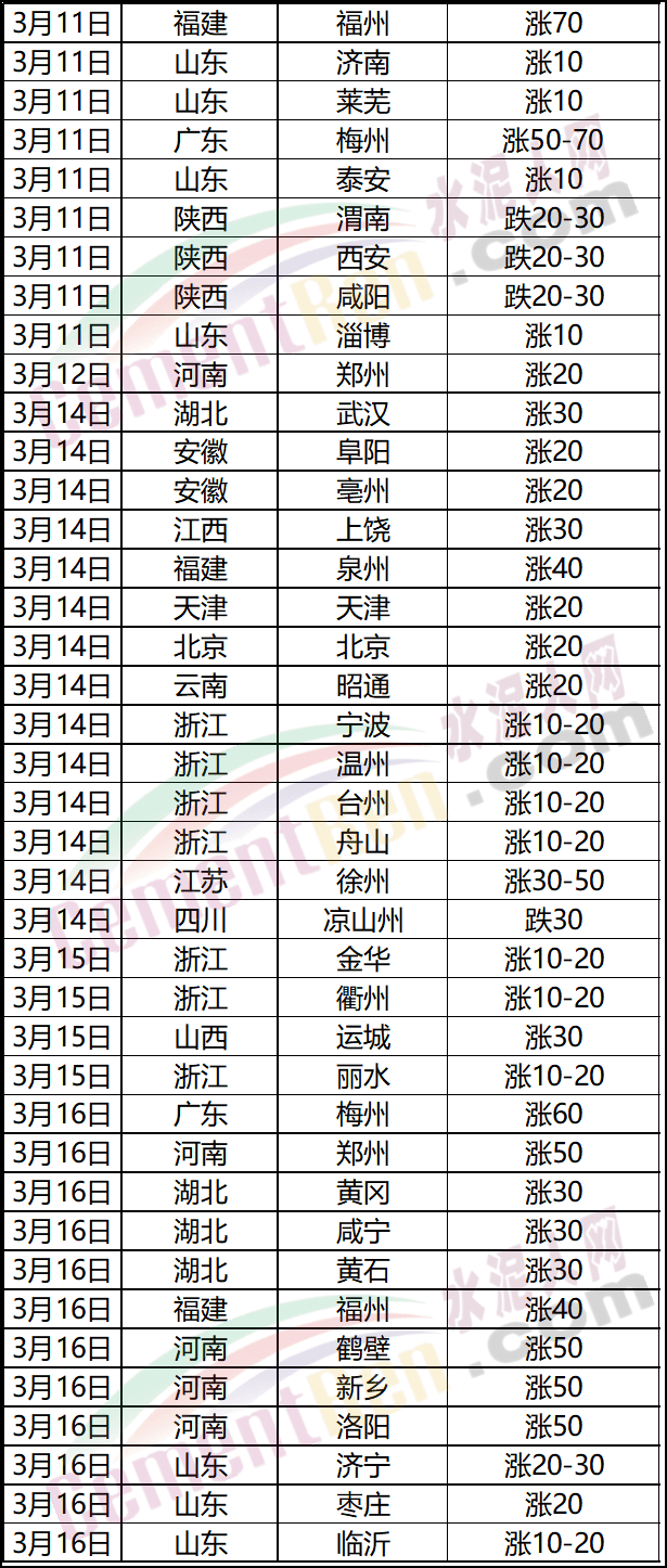 浙江省內(nèi)多區(qū)域普漲10-20元/噸