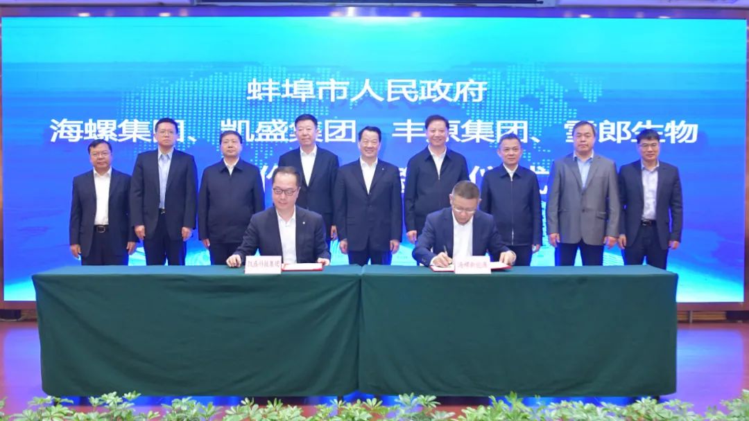 當(dāng)天上午,蚌埠市人民政府、海螺集團(tuán)、中建材玻璃新材料研究總院戰(zhàn)略合作協(xié)議,蚌埠市人民政府、海螺集團(tuán)、豐原集團(tuán)、雪郎生物戰(zhàn)略合作協(xié)議分別簽署。海螺集團(tuán)與凱盛科技集團(tuán),安徽自貿(mào)試驗(yàn)區(qū)蚌埠片區(qū)管委會(huì)與安徽國(guó)貿(mào)集團(tuán)分別進(jìn)行了簽約。