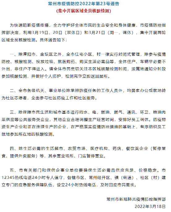 3月18日,銅陵市新冠肺炎疫情防控應(yīng)急綜合指揮部凌晨通報(bào):6時(shí)起,銅官區(qū)、義安區(qū)、郊區(qū)實(shí)行管控措施:城市小區(qū)實(shí)行封閉管理;除批準(zhǔn)的企業(yè)其他一律停工停產(chǎn);除批準(zhǔn)外經(jīng)營場所暫停營業(yè)。