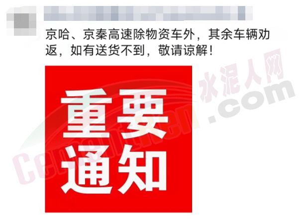 做為京津冀區(qū)域的水泥重鎮(zhèn),唐山地區(qū)的嚴(yán)格管控對(duì)水泥市場(chǎng)產(chǎn)生一定的影響 。一水泥經(jīng)銷商提示稱,除物資車外,其他車輛勸返,如有送貨不到,敬請(qǐng)諒解。