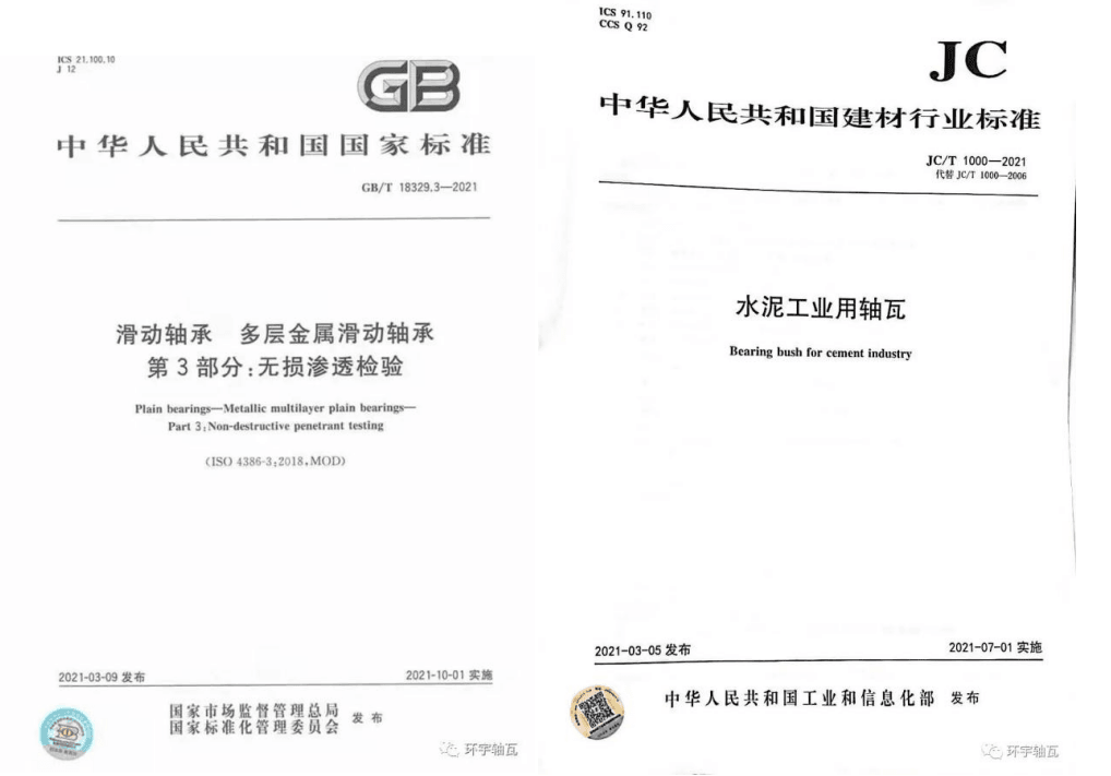 目前,由環(huán)宇軸瓦參與制定的三項(xiàng)滑動(dòng)軸承國家標(biāo)準(zhǔn)已發(fā)布: