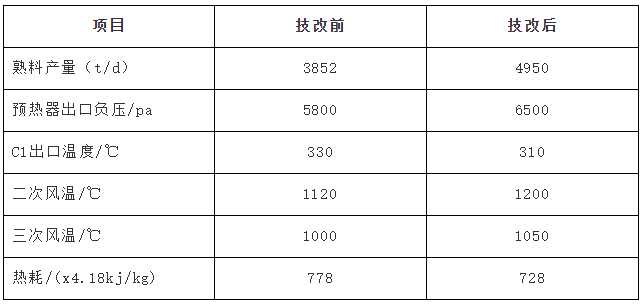 表4 燒成系統(tǒng)主要技術(shù)指標(biāo)(改造前)