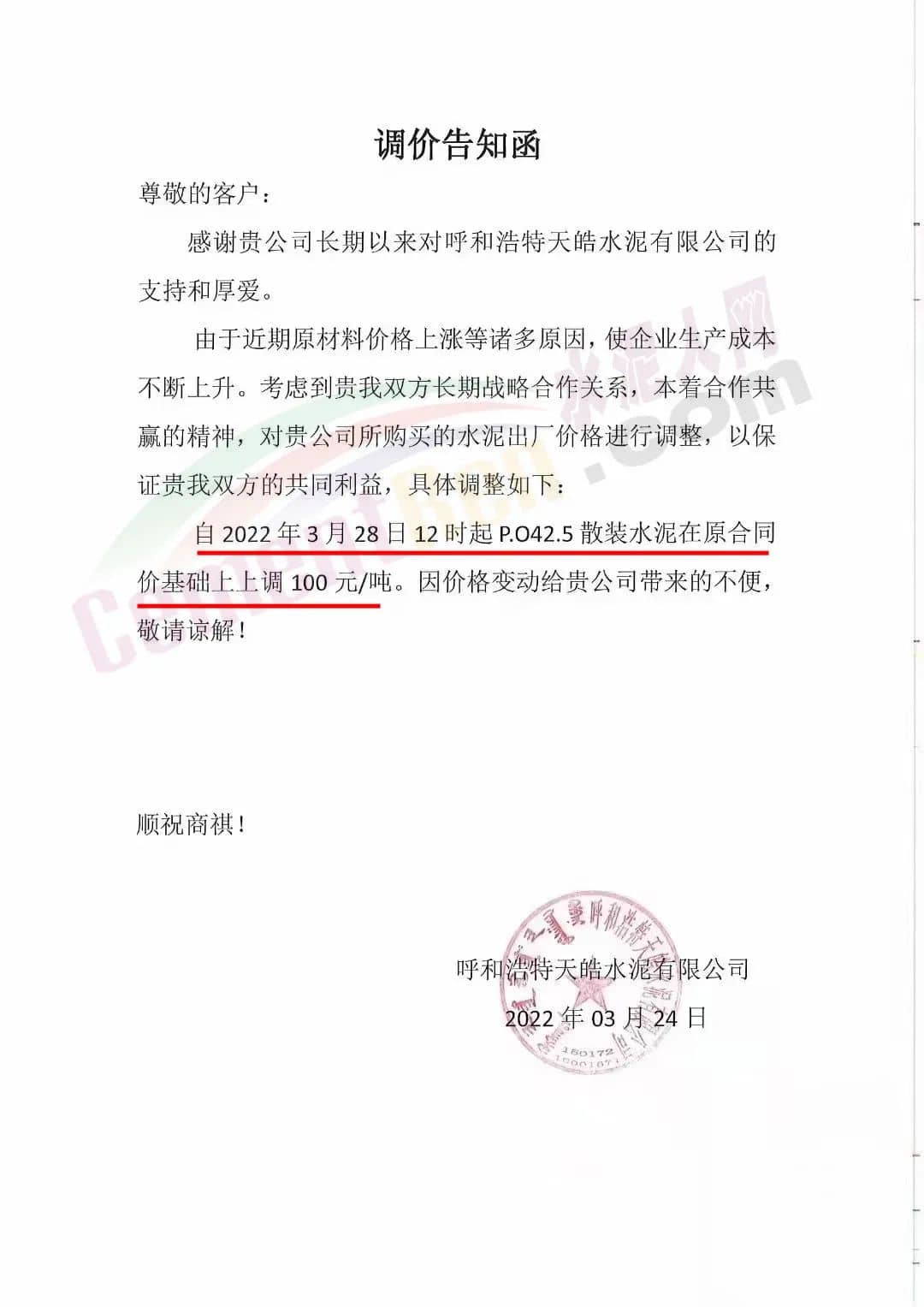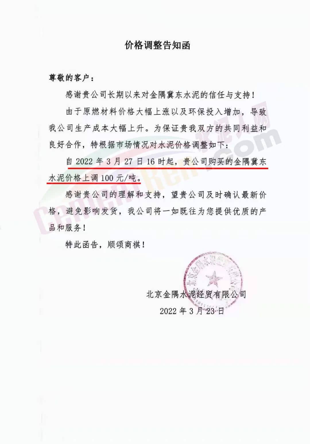 據(jù)市場反饋,不僅山西區(qū)域,近幾日多省市區(qū)域水泥價(jià)格持續(xù)上調(diào)中,3月21日,南京部分主流品牌水泥價(jià)格漲20元/噸,漲價(jià)主要針對江北部分地區(qū)。3月21日濟(jì)南水泥價(jià)格漲10-20元/噸,企業(yè)調(diào)價(jià)通知稱因油價(jià)上漲,原材料價(jià)格上漲,水泥綜合成本提升。3月19日,江西贛州地區(qū)部分廠家推漲水泥價(jià)格30-40元/噸。3月19日,湖北襄陽、十堰地區(qū)部分廠家通知上調(diào)水泥價(jià)格30-50元/噸。