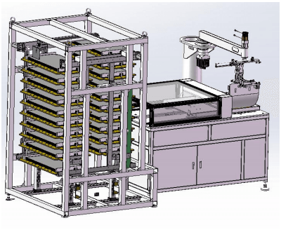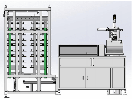 (1)機(jī)體由多層儲料平臺組成,根據(jù)現(xiàn)場實際空間與產(chǎn)量定制理袋機(jī)。