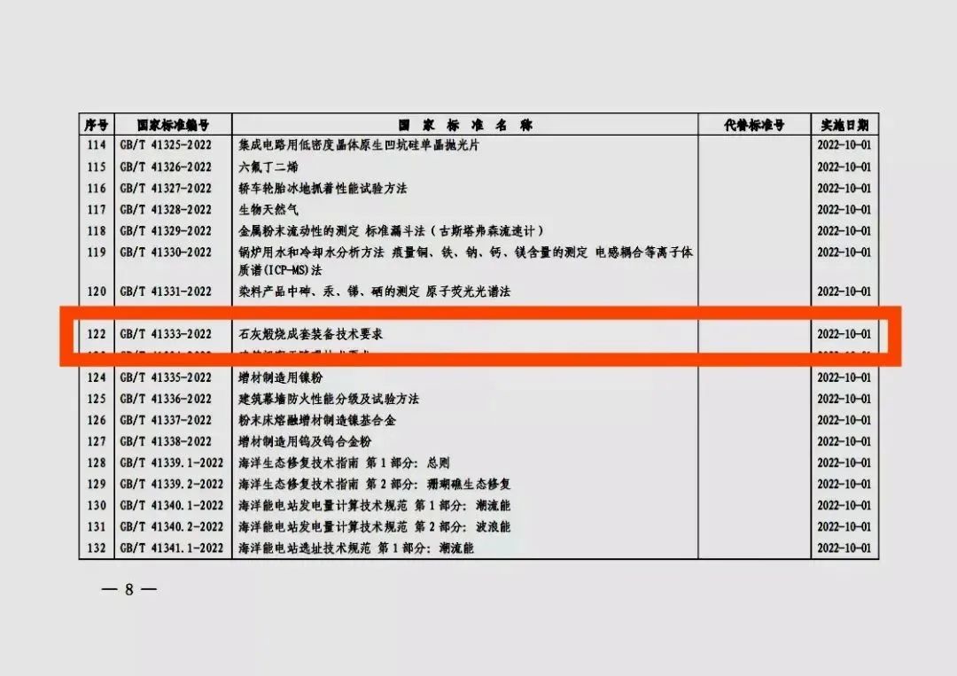 3月9日,國(guó)家市場(chǎng)監(jiān)督管理總局(國(guó)家標(biāo)準(zhǔn)化管理委員會(huì))批準(zhǔn)發(fā)布GB/T 41333-2022《石灰煅燒成套裝備技術(shù)要求》國(guó)家標(biāo)準(zhǔn),該標(biāo)準(zhǔn)自2022年10月1日起正式實(shí)施,西礦環(huán)保參與編制。