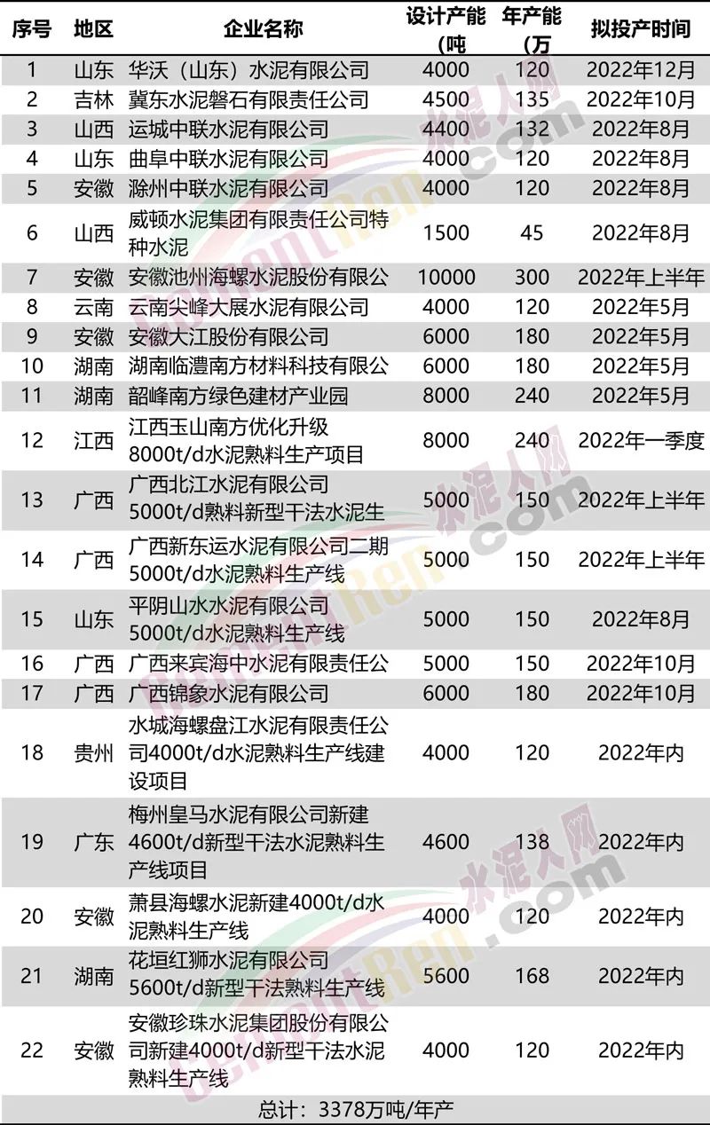 據(jù)水泥人網(wǎng)此前消息,2021年下半年點火投產(chǎn)的9個項目產(chǎn)能規(guī)模日產(chǎn)能達到52000噸,年產(chǎn)1560萬噸。而且全部達到綠色、智能、超低排放要求。(相關(guān)鏈接:“搶灘”!多條“智能化”水泥生產(chǎn)線集中點火!)