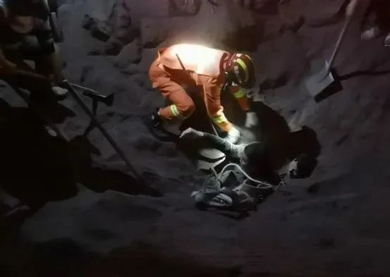 其中一名男子只剩頭部露在外面,身子全部陷入沙子之中,意識模糊,奄奄一息。救援人員在現(xiàn)場得知有工作人員曾試圖救援過,但是沒有成功。