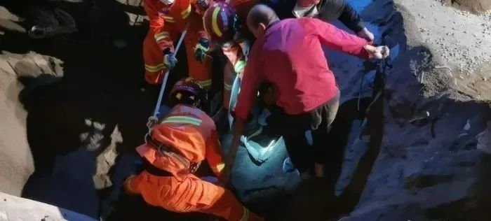 隨即,消防救援人員立即采取用手刨土的方式,一點一點地將被困男子周圍沙子清理掉,期間利用繩索拴在被困男子腰帶上,企圖將他拉上來,但是任憑救援人員聯(lián)同現(xiàn)場工人怎么拖拽始終難以脫離。