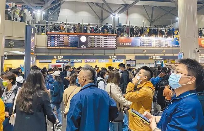 大批旅客4月1日晚擠爆臺灣高鐵臺南站、左營站。