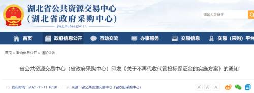 近日,湖北省公共資源交易中心印發(fā)《關于不再代收代管投標保證金的實施方案》,其中提到省交易(采購)中心自2021年12月1日起不再代收代管投標保證金。省交易(采購)中心將對招標文件示范文本進行修訂,2021年12月1日上線運行后,使用修訂后的招標文件示范文本開展招投標活動的,省交易(采購)中心不再代收代管投標保證金。再明確:政府采購工程招投標項目免收投標保證金;依法必須招標的工程建設項目投標保證金不得超過合同估算價的1%,最高不超過50萬元。2021年3月,湖北省公共資源交易中心印發(fā)通知,要求停止收取政采工程投標保證金、履約保證金。在工程建設領域,推行以保險、保函替代現(xiàn)金保證金;政采招標免收投標保證金、履約保證金。