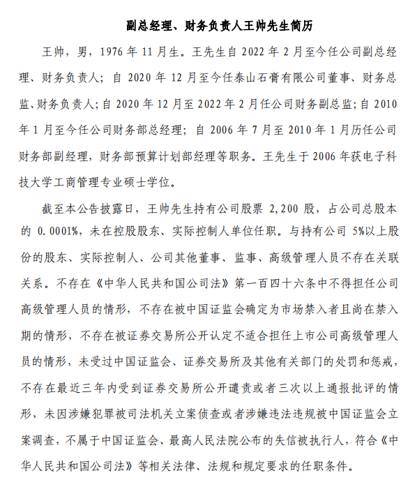 史可平、郝曉冬、楊正波、王帥、任利擔(dān)任副總經(jīng)理。