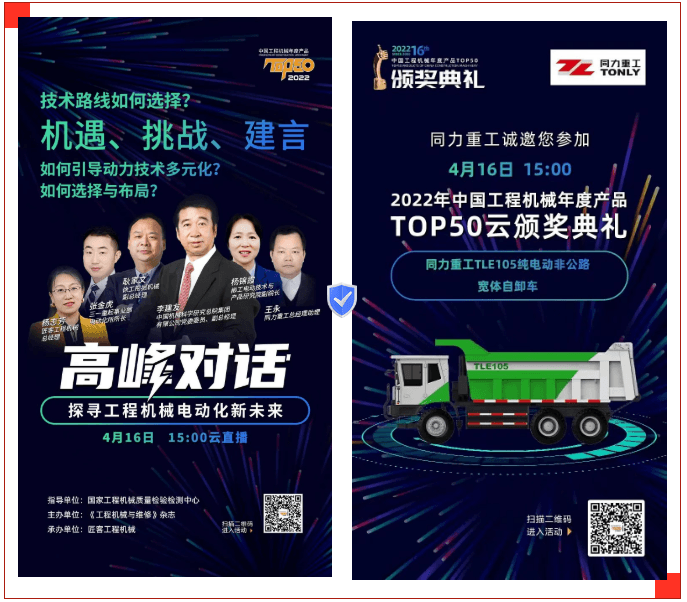 2022年4月16日是個令人振奮的日子,神舟十三號載人飛船返回艙快準穩(wěn)的安全著陸,三名宇航員平安返回,祖國強大,令人振奮。2022中國工程機械年度產品TOP50“新能源金獎”產品頒獎活動在北京隆重舉行,同力重工TL105E純電動非公路寬體自卸車榮獲工程機械行業(yè)“新能源金獎”產品稱號,這消息,同樣令人振奮!