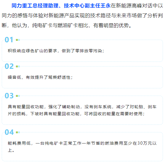 同力重工TL105E純電動非公路寬體自卸車榮獲工程機械行業(yè)“新能源金獎”產品稱號,這是用戶與行業(yè)對同力重工的高度肯定,也是對同力重工的強大激勵。在頒獎典禮上,同力重工副總經理楊建耀發(fā)表了熱情洋溢的獲獎感言,他表示:同力重工將珍惜這份榮譽持續(xù)加大研發(fā)投入,為廣大用戶提供技術成熟、性能先進、性價比更高的產品與服務,持續(xù)引領行業(yè)技術創(chuàng)新,為碳達峰、碳中和目標實現(xiàn)貢獻同力智慧與方案,體現(xiàn)同力重工的責任與擔當,與行業(yè)同仁一起探尋工程機械電動化新的未來!