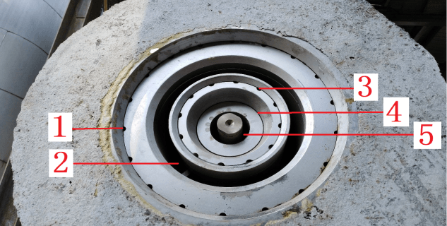 (4)調節(jié)方便、適應性廣:燃燒器凈風各通道安裝渦輪蝸桿調節(jié)機構,能夠靈活調節(jié)各風道的截面積;同時各風道設置調節(jié)風量的閥門,使火焰粗細和長度可調,能夠形成理想的溫度場和熱工制度,對煤質、物料的波動變化適應性強,能更好地保護窯皮和耐火磚,提高窯的運轉率。