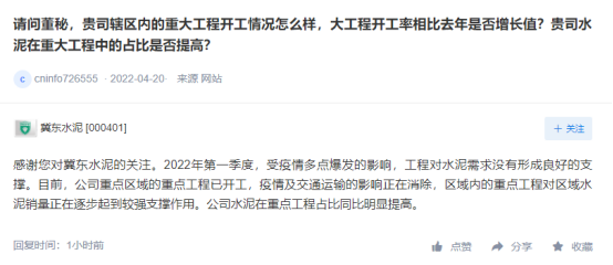 冀東水泥回復(fù):公司主要產(chǎn)能及市場處于北方區(qū)域,一季度屬銷售淡季加之疫情多發(fā)影響,公司水泥及熟料銷量下降,是公司第一季度虧損的主要原因。