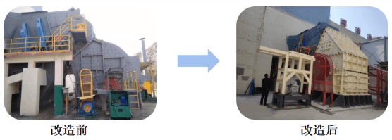 鑫金山技改系統(tǒng)通過在水泥廠原料破碎環(huán)節(jié)上,對現(xiàn)有傳統(tǒng)單段錘式破碎機進行技術(shù)革新,替換成“低能耗、高產(chǎn)能、高成品率”的鑫金山專利產(chǎn)品——新型單段錘式破碎機,將原主機產(chǎn)能加大2-3倍,大幅改進主機內(nèi)部篩板結(jié)構(gòu),改造后生產(chǎn)線所生產(chǎn)的混料“質(zhì)量”大幅提升,生產(chǎn)能耗降低了50%,為用戶每年節(jié)約巨額電費。