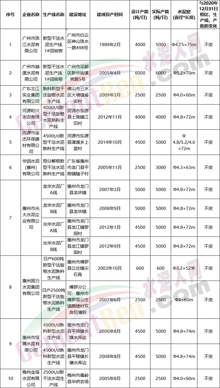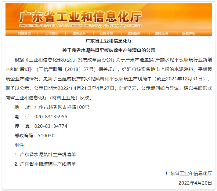 4月20日,廣東省工業(yè)和信息化廳公布了《2021年廣東省水泥熟料平板玻璃生產(chǎn)線清單》,截至2021年12月31日,廣東省內(nèi)共計78條水泥熟料生產(chǎn)線,其中7條生產(chǎn)線已停產(chǎn)。